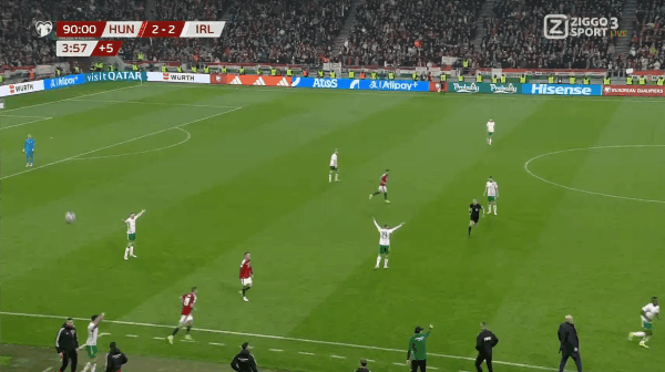 6686体育官网11月17日讯 26赛季世欧预分组赛F组第10轮,爱尔兰3-2战胜匈牙利。竞赛开场不久,卢卡奇闪击破门,随后帕洛特点射绝平,瓦尔加世界波再度逆转局赛果分。下半场最后时刻,帕洛特吊射破门又在最后时刻抢点得手补时最后一投,爱尔兰逆转匈牙利,挺进附加赛。