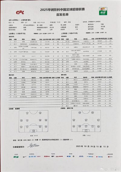 6686体育官网10月26日讯 博主“牛眼看球”透露,山东泰山临时变更的与海港一役的首发,其中路易斯·洛佩斯下场,彭啸变为首发。