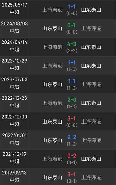 泰山上次击败海港在1093天前,近10次交锋双方各胜3场