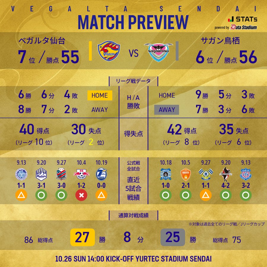 6686体育官网10月26日讯 日职乙第34轮,仙台七夕将坐镇主队场迎来鸟栖砂岩的挑战。