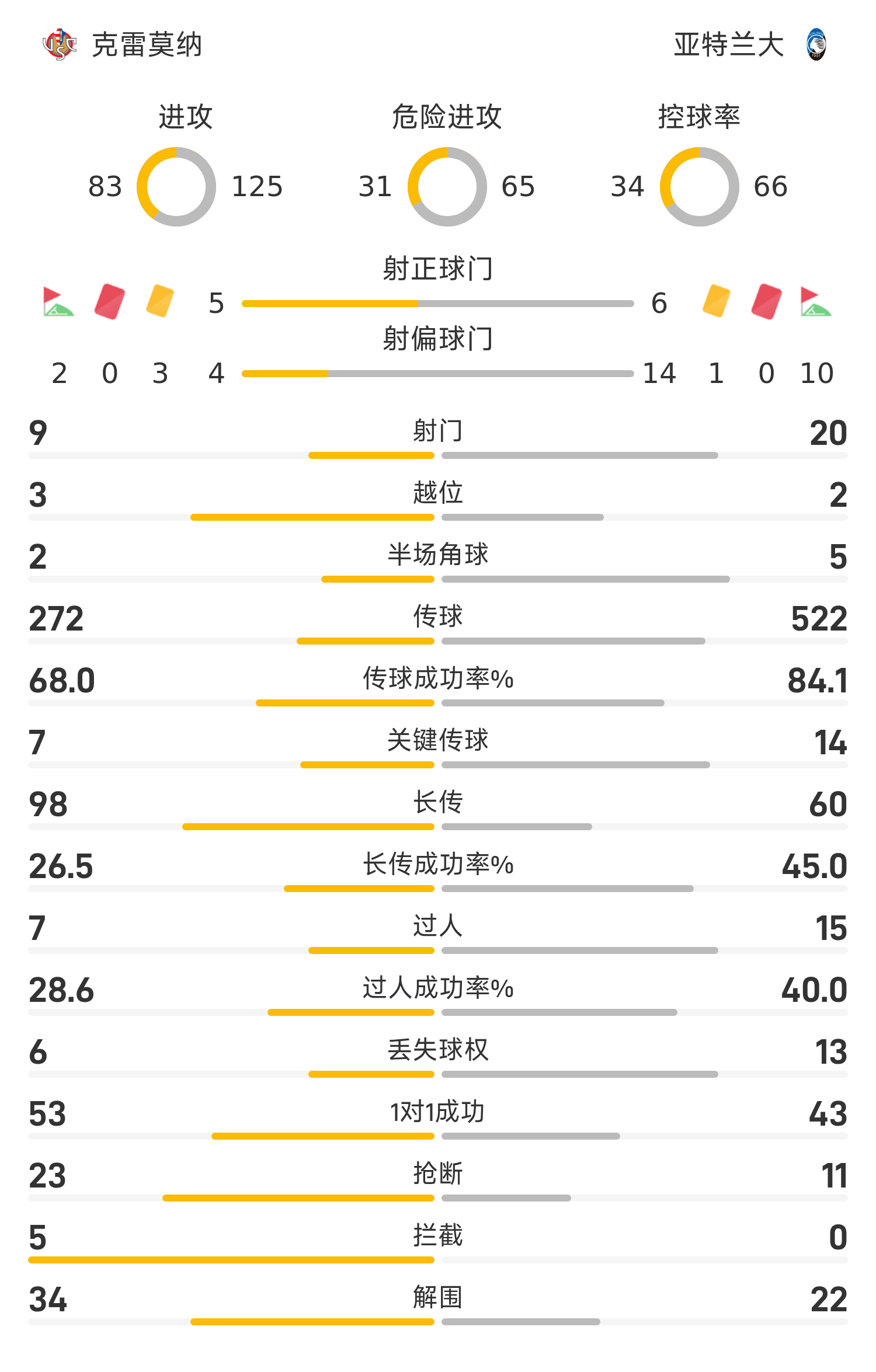 35’科斯托维奇起脚外围射门,克雷莫纳守门员将球扑出