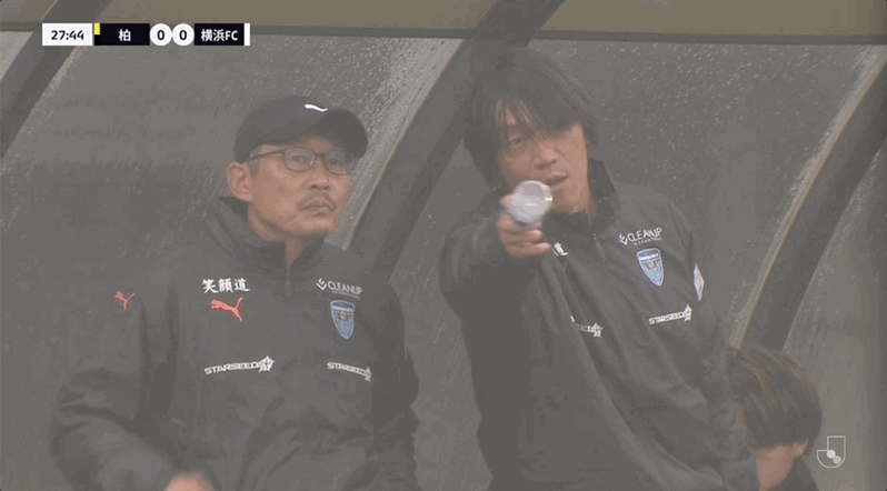 28’指点江山!中村俊辅场边与横滨FC主帅耐心沟通