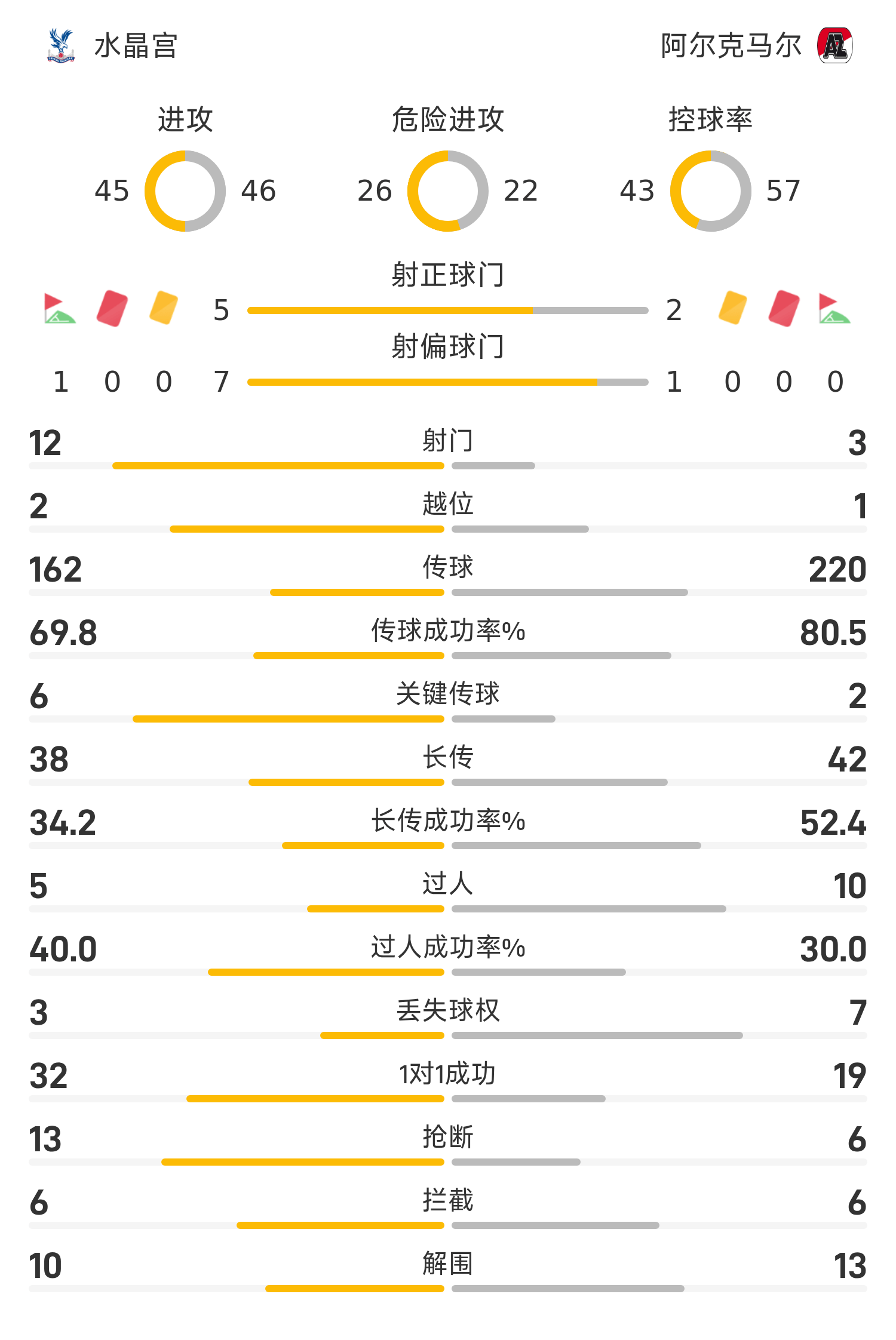 欧协联半场:马特塔失点,拉克鲁瓦传射,水晶宫2-0阿尔克马尔