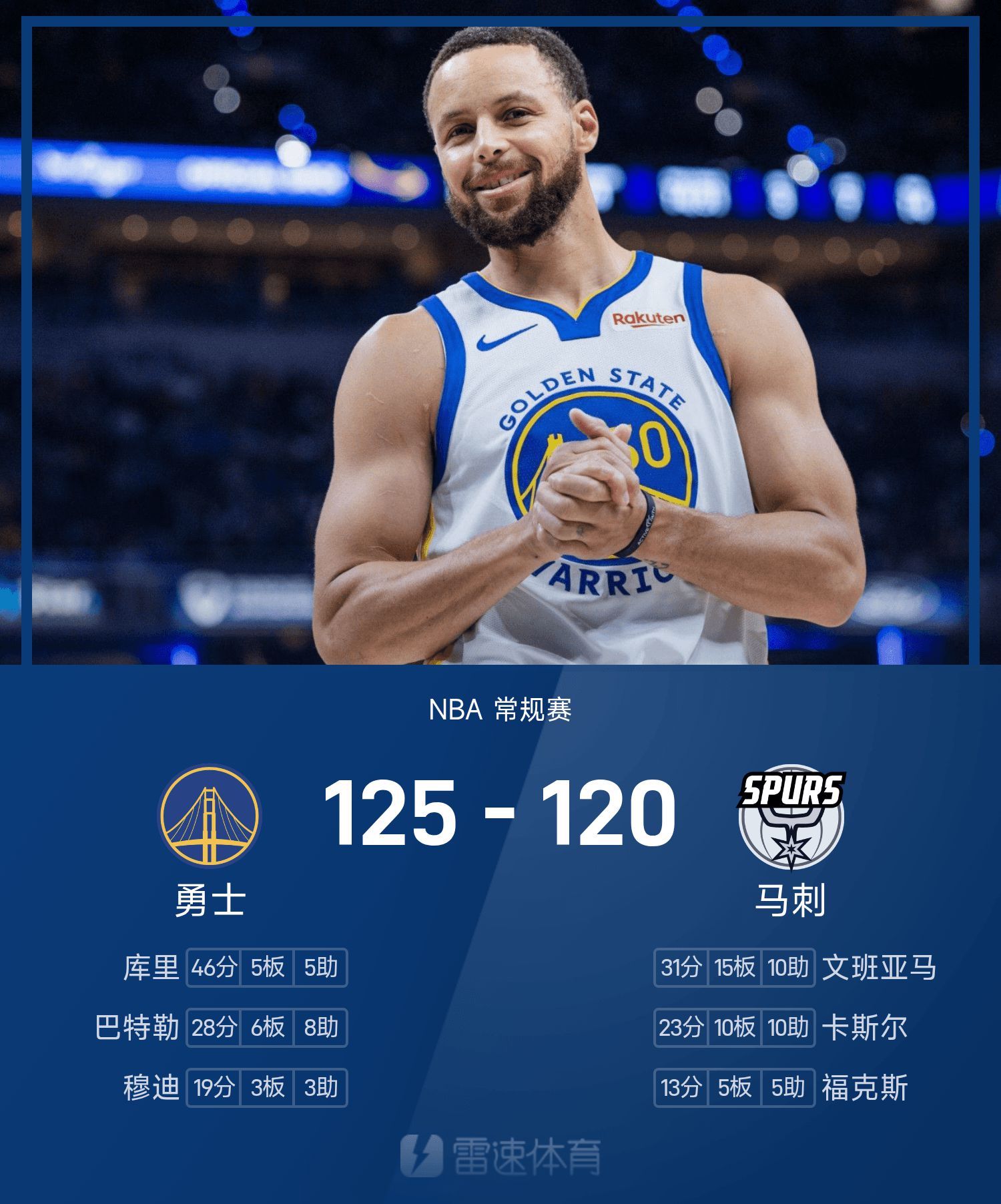 勇士125-120马刺