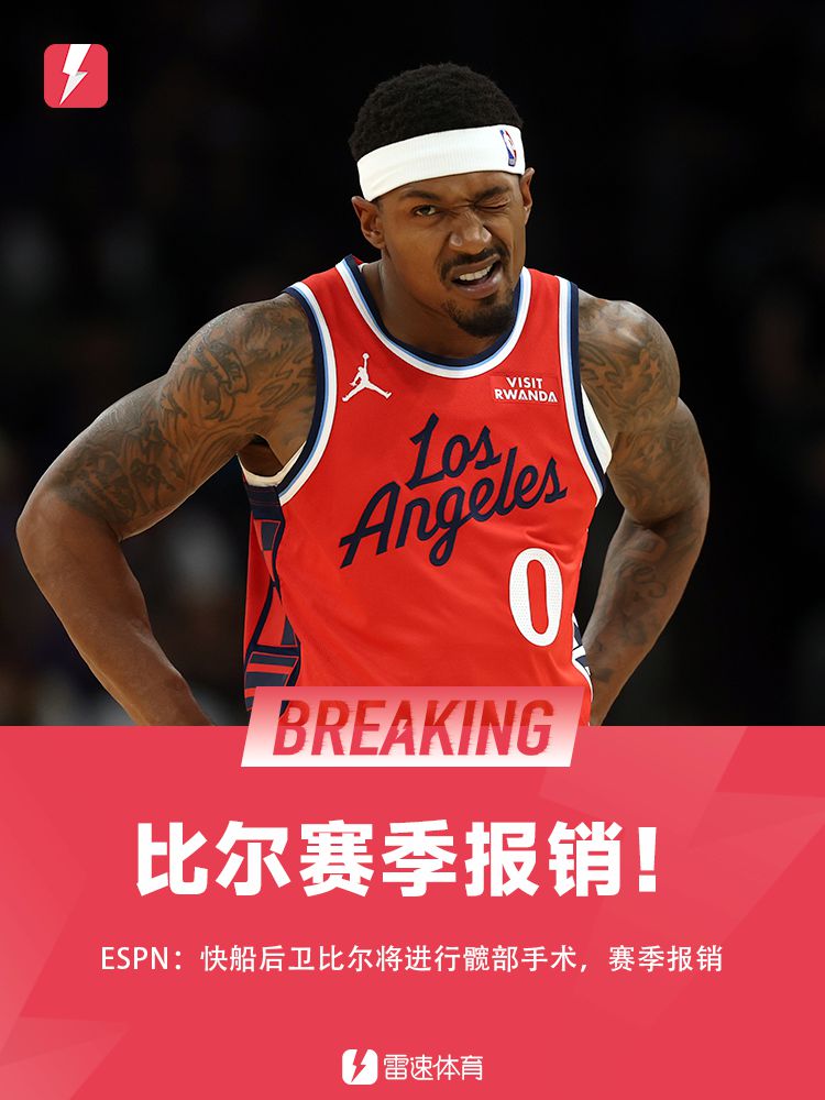 6686体育官网11月13日讯 今日,据ESPN名记Shams报道,快船后卫比尔遭遇髋部骨折将进行手术,赛季报销。