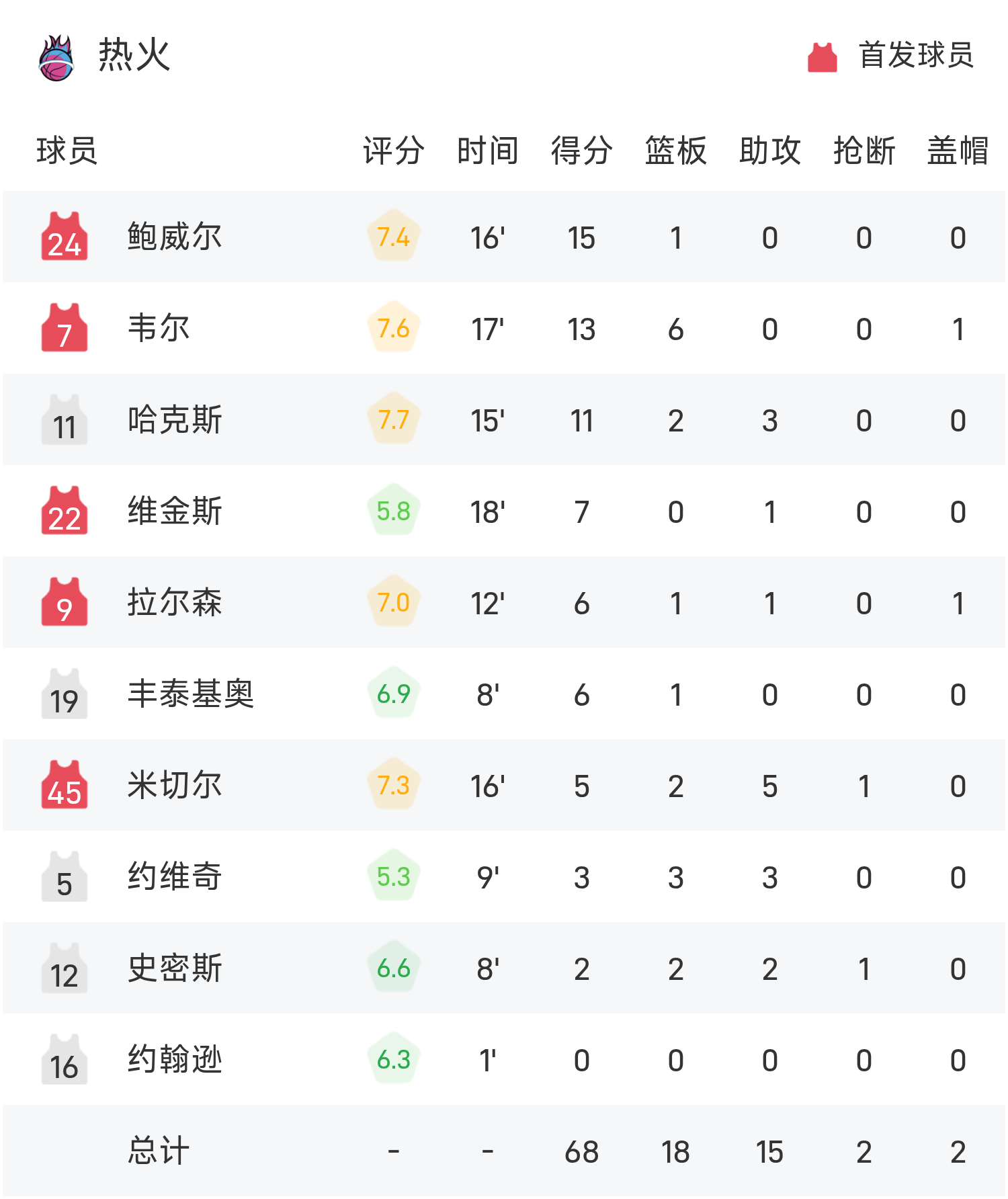 NBA半场:唐斯31分,阿努诺比伤退,尼克斯78-68热火