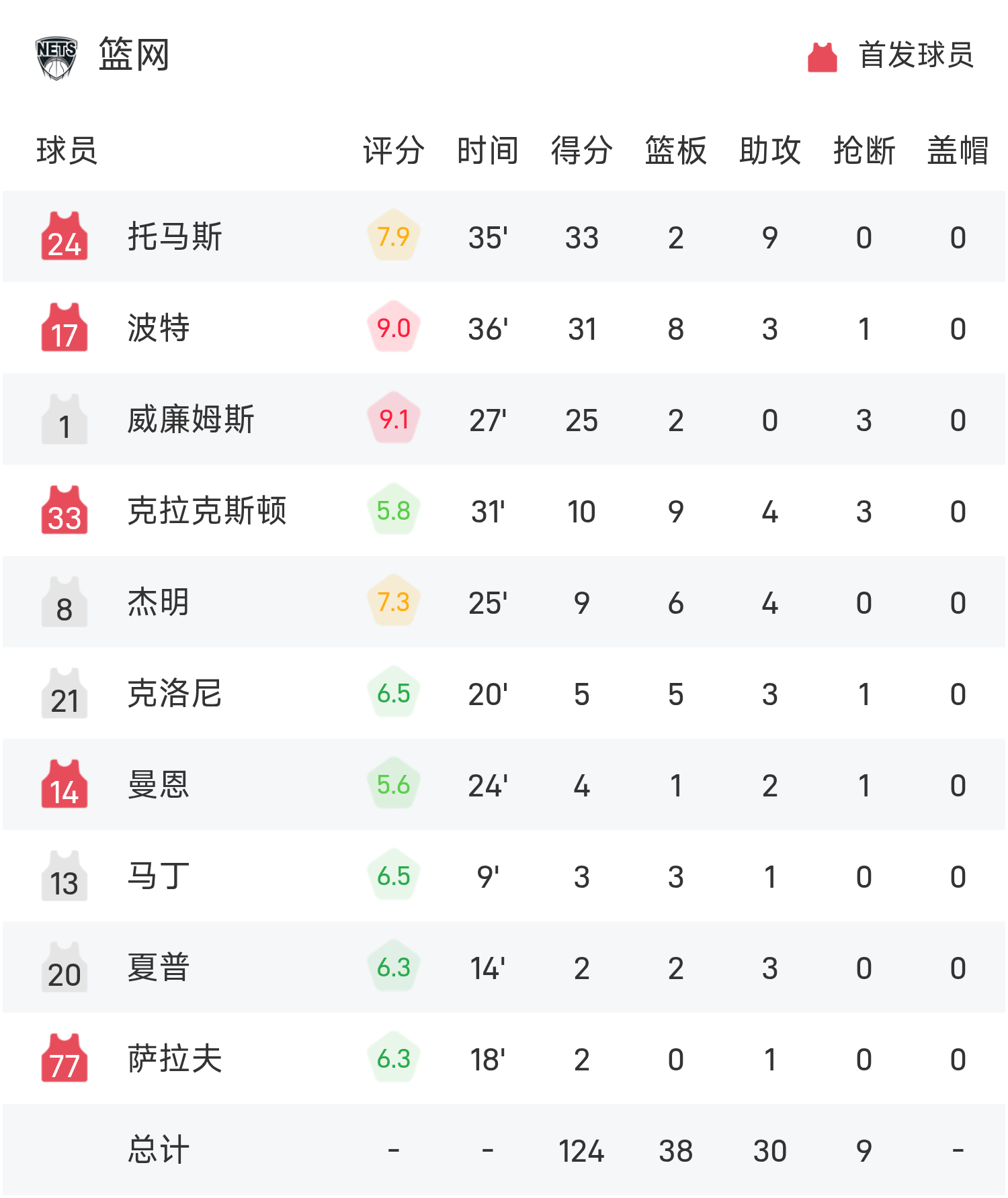 6686体育官网10月25日讯 25/26赛季NBA 常规赛,篮网对阵骑士。双方全场战罢,篮网124-131不敌骑士。米切尔砍下全场最高的35分2板5助,率领骑士胜利取胜。