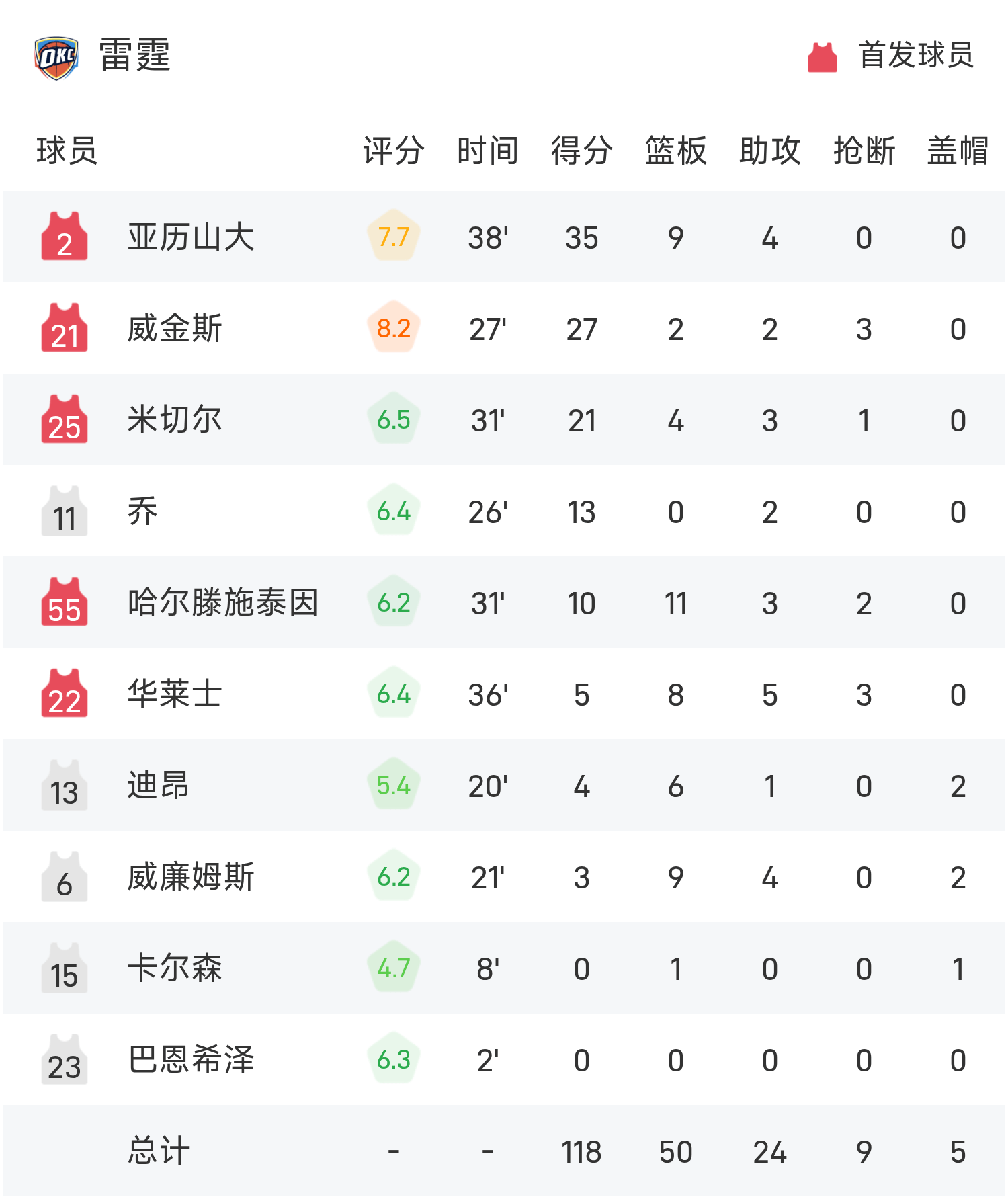 球员数据 查看更多